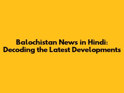 Balochistan News In Hindi: Latest Updates And Analysis