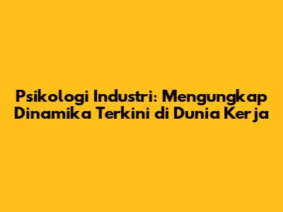Dunia kerja terus berubah dengan cepat, dan psikologi industri memainkan peran penting dalam membantu kita semua untuk beradaptasi dan meraih kesuksesan. Dengan memahami prinsip-prinsipnya dan menerapkannya dalam kehidupan sehari-hari, kita dapat meningkatkan kepuasan kerja, meningkatkan produktivitas, mencapai work-life balance, mengembangkan diri, dan mencapai tujuan karier kita.