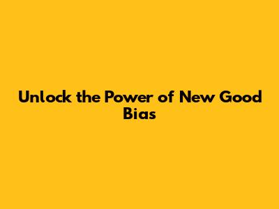 Unlock The Power Of New Good Bias